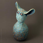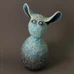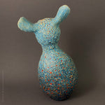 This sculpture stands on its own base and can be displayed on any flat surface.