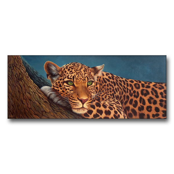He doesn’t move. He doesn’t need to. Resting high on a sun-warmed branch, he surveys the world below — calm, composed, and entirely in command. Watchful Eyes is a portrait of still power — the kind that doesn’t seek attention, but quietly commands it. I was drawn to this moment because it holds tension without noise. His green eyes are the soul of the painting — steady, intelligent, and vividly aware. In that gaze is a strength that doesn’t need to be proven. That’s what I hoped to capture: the quiet dignity of a creature completely at home in his own presence. This piece is a tribute to wildness — not as chaos, but as something deeply refined. A way of being that is alert, grounded, and effortlessly complete.