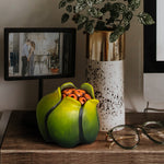 This sculpture stands on its own base and can be displayed on any flat surface.