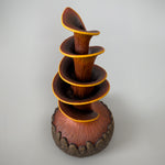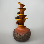 This sculpture stands on its own base and can be displayed on any flat surface.