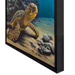 Green sea turtles spend most of their lives underwater, where they can rest for up to five hours at a time before coming up for air. When active, they typically alternate between being underwater for a few minutes and coming up to the surface to breathe air for a few seconds. These beautiful, dense and heavy animals can reach 3 to 4 feet in length and weigh up to 350 pounds. A healthy individual can be expected to live 80 to 100 years. Green sea turtles are an endangered species that have undergone an estimated 90 percent population decrease over the past half century.