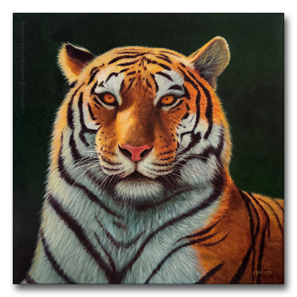 I find tigers very fascinating. They are beautiful, majestic, intimidating, and the most perfect combination of colours and shapes you can find in an animal. I was especially drawn to this gorgeous tiger, basking in the sun, staring directly at me with his piercing golden eyes.