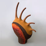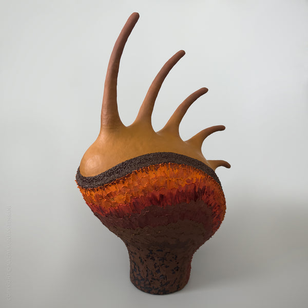 This sculpture stands on its own base and can be displayed on any flat surface.