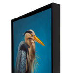 The great blue heron with its subtle blue-grey plumage often stands motionless as it scans for prey, or wades belly deep with long, deliberate steps. They weigh only 5 to 6 pounds due to their hollow bones—a feature all birds share. These beautiful birds have specialized feathers on their chest that continually grow, fray, and produce a powdery substance. They comb this powder down with a fringed claw on their middle toes, using the down like a washcloth to remove fish slime and other oils from their feathers as they preen. The great blue heron can be found near most bodies of water throughout North America, from southern Alaska, across central Canada to Nova Scotia, south to parts of the Caribbean and northern Mexico.